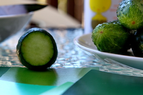 Огурцу повезло меньше, быстренько определив его гамму снаружи, Кирюха приступил к исследованиям изнутри. Надо признать, что огурец не очень честный овощ. Внутри он совсем не похож на огурец…![]()