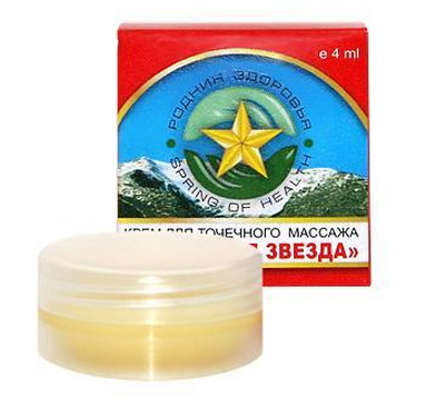 Основное предназначение продукта «Тибетская звезда» - воздействие с помощью массажа на определенные акупунктурные точки человеческого организма. Точечный массаж возник в Древней Индии и Тибете, подробным изучением рефлекторных зон для массажа занимались также современные немецкие медики. Подобный массаж рекомендуется делать с помощью определенных эфирных масел или кремов. Крем наносится на кожу в определенной точке, и она без напряжения массируется по часовой стрелке до тех пор, пока кожа не порозовеет (достаточно несколько минут). Саму точку вы обнаружите по чуть более заметным болезненным ощущениям при нажатии. Точки бывают узконаправленного действия и универсальные. К последним, например, относится точка на стыке большого и указательного пальцев (на тыльной стороне ладони). Ее массаж приносит облегчение при головной боли, усталости глаз и слуха, кровотечении из носа.