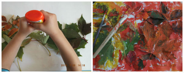 - используйте листья в своем творчестве (настоящие!). Сделать это можно разными способами. Очень популярно ставить листьями отпечатки.