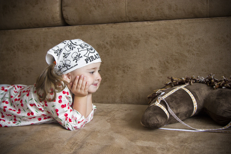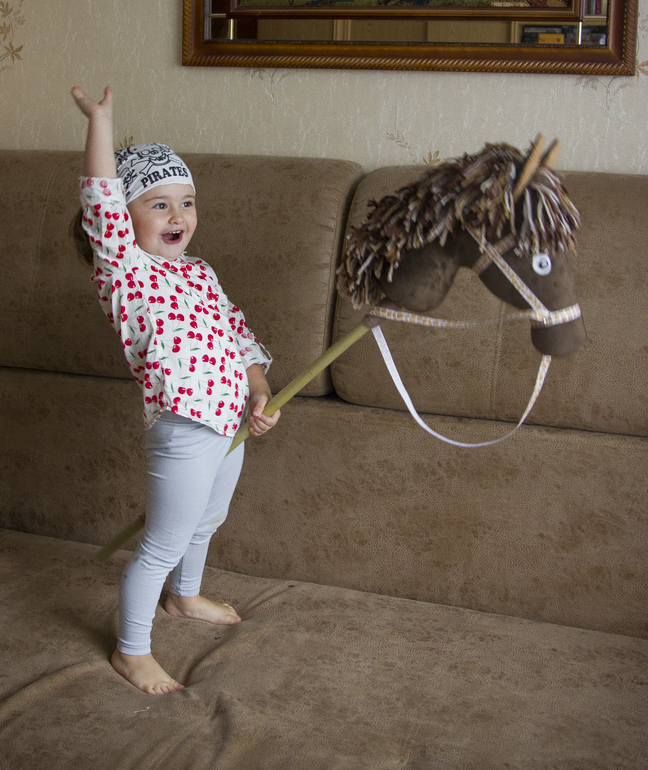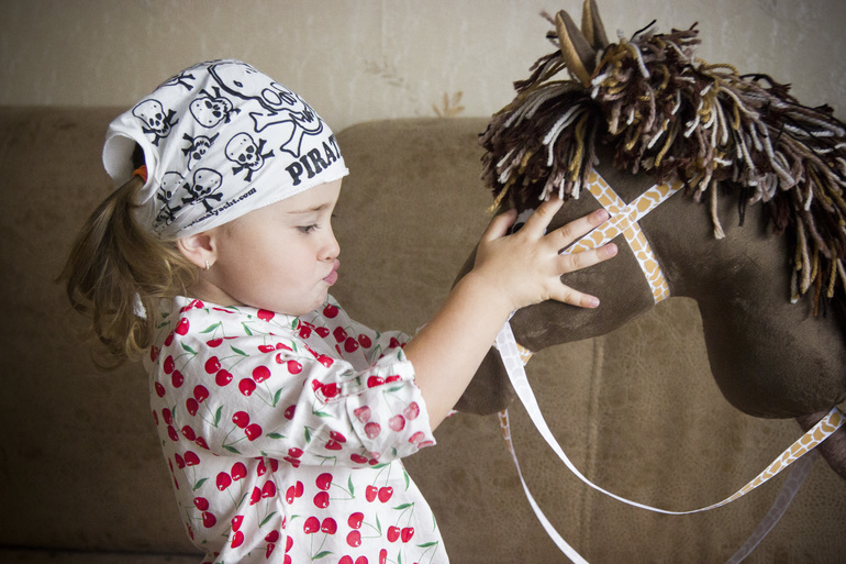 Я приехала, дочь уже спала, поэтому вручила ей коня утром.