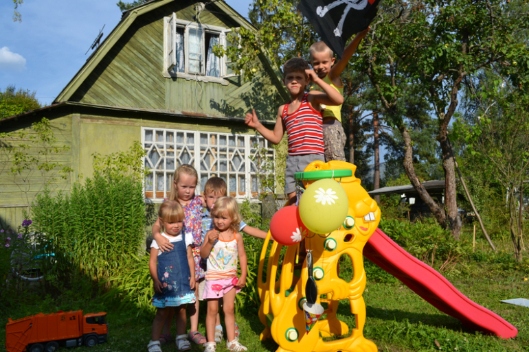 вспоминаю свое детство, тоже всегда строила что-то из подручных материалов, шалаши, домики... вот только компашка не такая веселая была, они так дружно играют (в основном) соры конечно тоже бывают :)