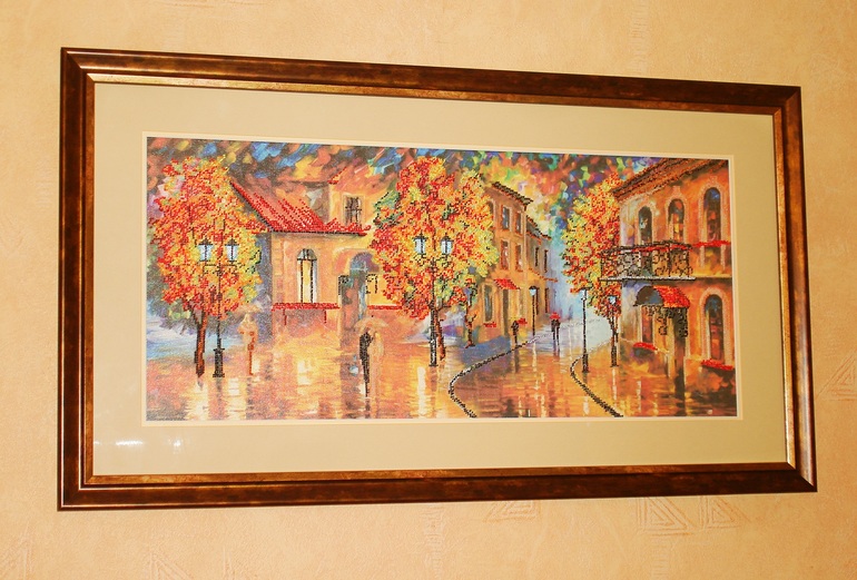 Наконец-то я оформила свою картиночку,1.5 года она лежала и ждала своего часа-сначала переезд,потом не до вышивки было,а потом просто копила денежку на багетку))) И вот прям подарочек к новому году получился!!!Спасибо огромное Айвару за замечательное оформление, я осталась довольна на все 100%! Вышивка бисером на холсте, потом покрыта лаком- фирма Абрис Арт.