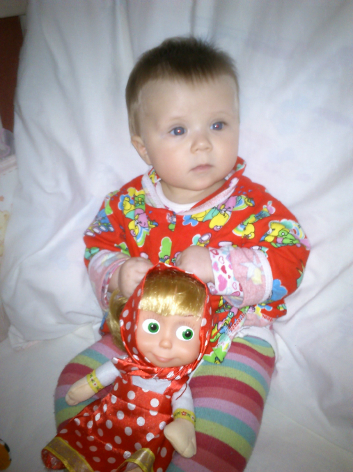 Что мы имеем: вес 9200 грм., рост 71 см., шесть зубов 4 верхних и 2 нижних, из прививок: БЦЖ, Пентаксим, АКДС. Кушаем овощи, каши, мясо, фрукты, хлебушек, баранки, сухарики, печенюшки и сисю. Говорим по-прежнему мало, в основном на своем тарабарском языке, ну и стандартное: мама, папа, баба, деде, киця, говорит как собачка гавкает, зовет кошку кис-кис, показывает глазки у игрушек и на картинках различает зверюшек в нашей мини книжечке. Ползать мы по-прежнему не умеем, ну не наше это и все тут. Недавно научились стоять сами без опоры и поддержки, делаем первые шаги, совсем скоро будет бегать самостоятельно гонять голубей. Машка растет живиньким и активным ребеночком, иногда даже кажется, что она сверх активная. Маленькое торнадо, на кухне она уже во всю хозяйничает в шкафчиках, что дальше будет боюсь даже представить. Последнее время ведем напольную жизнь, на руках и в кроватке ни в какую, только бегать и ходить. Спим так же паршиво. В коляске ни ездим, беда с коляской в общем, я уже и не надеюсь, что она будет в ней ездить...