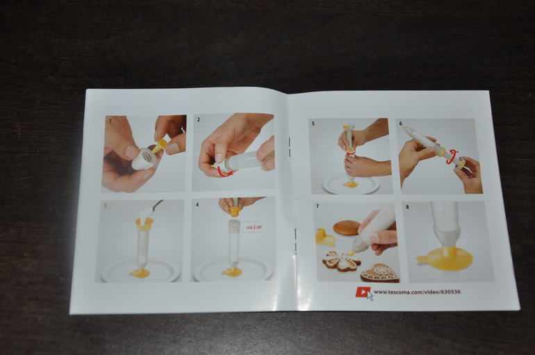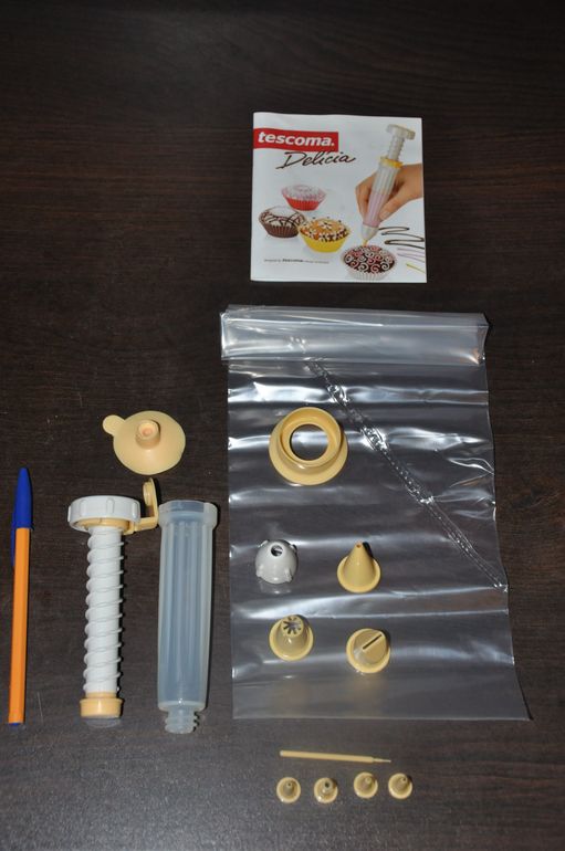 Для выдавливания я использую шприц и пакеты из вот такого набора тоже от Tescoma, но, думаю, обычные пакеты вполне их заменят: