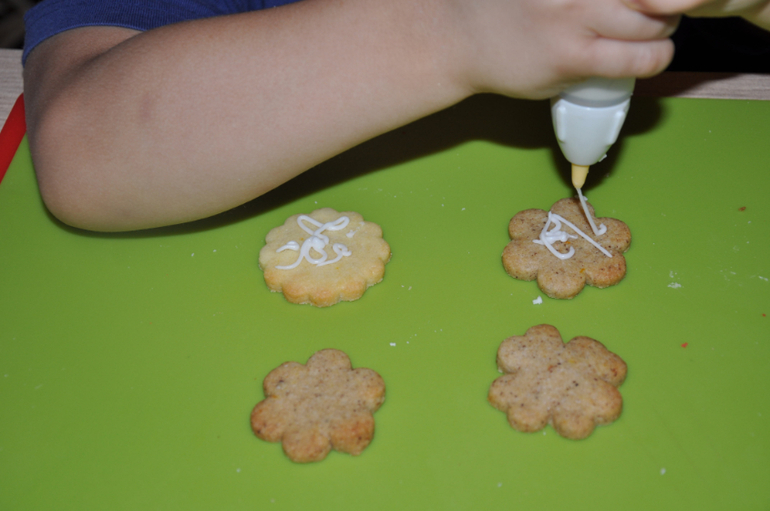 В прошлом году мы делали полную заливку глазурью, а в этом решили просто обойтись узорами. Во-первых, конечно, времени не хватает, а, во-вторых, обилие глазури забивает вкус самого печенья.