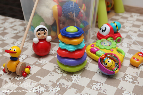 Кстати, уточка-каталка слева - наш лучший друг, мы приобрели ее после похода в гости к старшей подружке. Оказалось, сидеть и катать ее вперед-назад по полу - величайшее удовольствие.