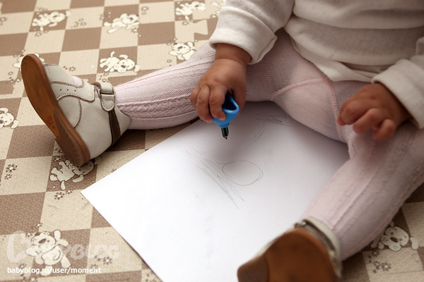 Для рисования я пока ничего умнее не придумала, как засунуть карандаш в клизму, чтобы его было удобнее захватывать всей ладонью. Но дома оказалась только обрезанная клизма, дойти купить целую пока не успела. Но уже что-то.