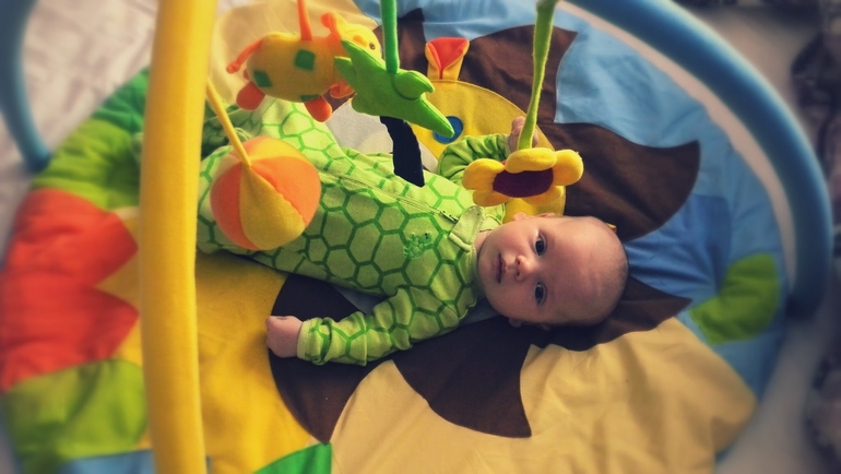 В последнее время я всё радовалась, какое у сыночка отличное настроение по утрам. Такой улыбастик, такой спокойный. Думала, что может вообще уже колики серьёзные не придут.
