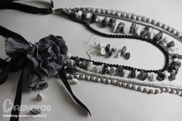 творчествоНу вот и ушла я в творческий отпуск.Это такой отпуск,когда не делаются заказы,а только то творится,чего душа хочет:)А душенька моя давно хотела сделать колье,и название ему давно придумалось" Каменный цветок".Но....как вы лодку назовете,так она и поплывет:)Вот и у меня так же....не выходил у меня каменный цветок,хоть ты тресни ".собирала" я его раз пять,а то и больше,и все что-то меня не устраивало.Очень хотелось сделать строгое колье,чтоб без наворотов,но в то же время,чтоб стильно получилось.Хотелось чтоб оно было как шепот,как тень, как шорох крыльев ночной птицы....