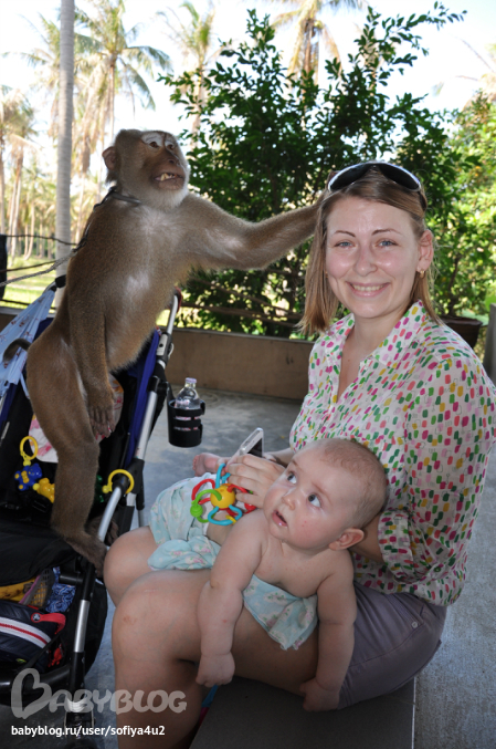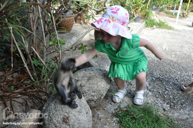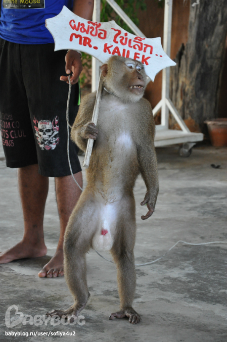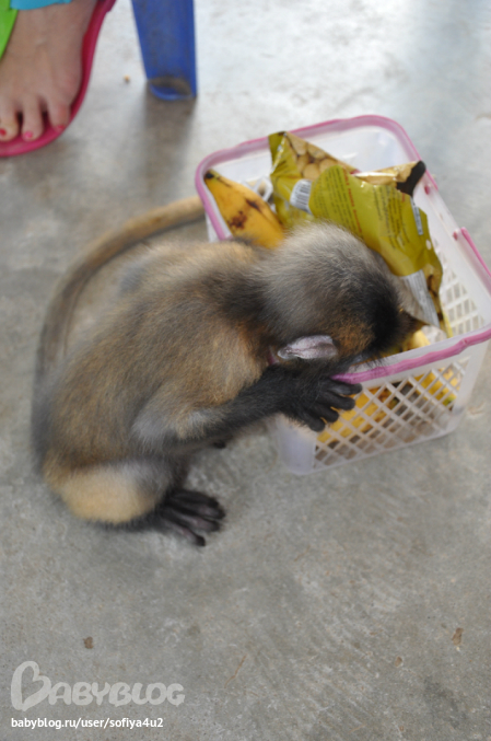 Потом представление 30-40 минут. Одна обезьяна ходила с табличкой, кувыркалась, насила карточки, играла в мяч, прыгала через огенное кольцо, издевалась на туристами. Вообщем мелких деток самое оно!