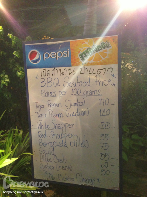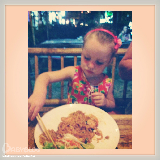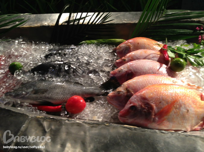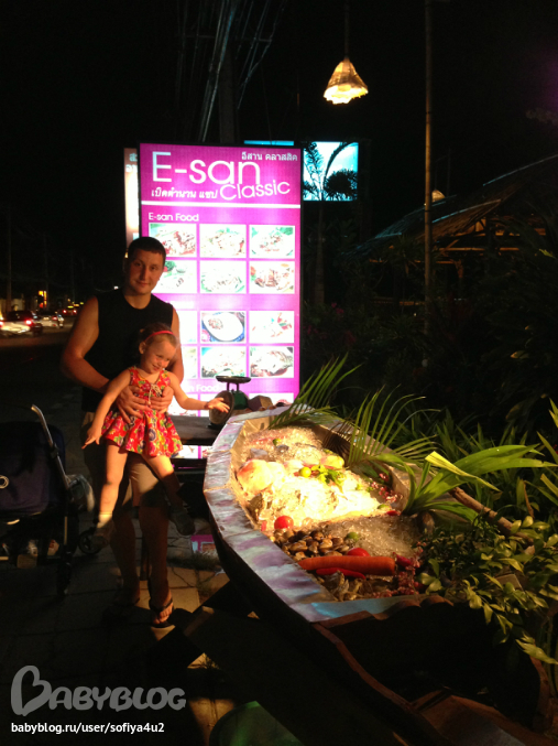 Наконец-то попробали рыбу со льда. White snipper grilled. Янка отрывается по лапше с криветками. Упертая, хочет есть палочками, как Тайцы. Ресторан в списке рекомендуем и еще вернемся.