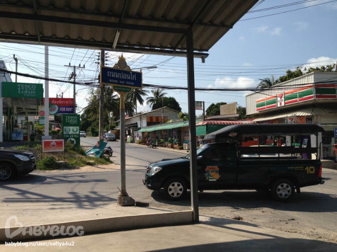 Берем на дороге, подняв руку, тук-тук 150 руб езды минут 10(просят изначально 200). Но видя нашу ораву с воздущным шариком, коляской и камерой на перевес меньше назвать сложно. Добрые люди научили впредь не спрашивать цену - садиться и при выходе оплачивать столько сколько считаем нужным. Местные это растояние проезжают за 20 батт.