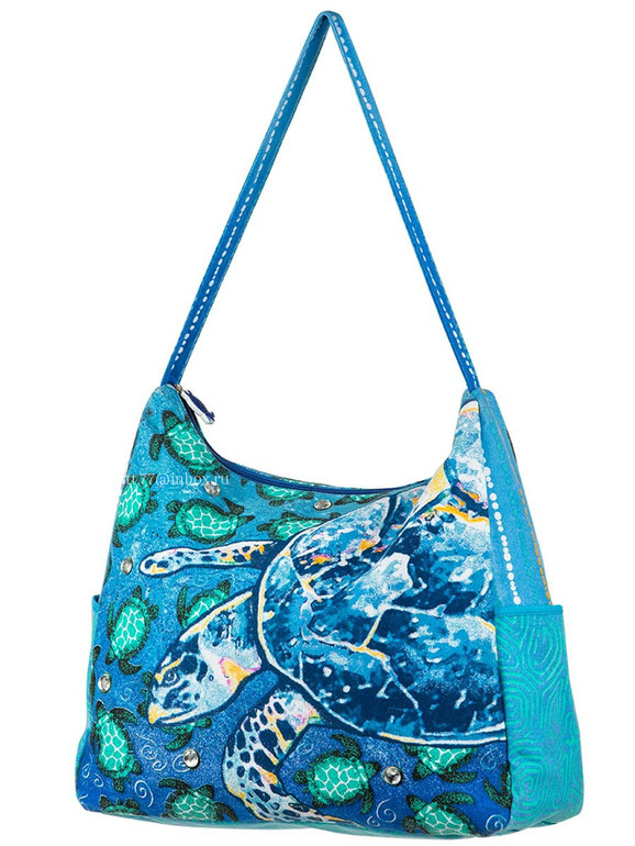 №90054. СУМКА ПЛЯЖНАЯ - 485р. Эффектная объёмная пляжная сумка с удобной ручкой и застёжкой-молнией, украшенной подвеской-черепашкой. Модель дополнена открытыми боковыми карманами и внутренним карманом на молнии. Размер: 41*36*12cm Состав: 100% хлопок - верх, рисунок - ПВХ Цвет: принт черепаха