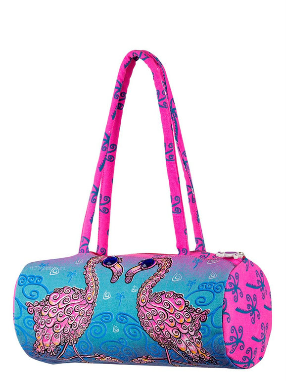№90044. СУМКА ПЛЯЖНАЯ - 335р. Небольшая, но вместительная сумочка оригинальной цилиндрической формы. Модель дополняют две ручки кручёного типа и застёжка-молния, украшенная подвеской-фламинго. Ещё один плюс изделия - потайной карман на молнии. Размер : 35*17cm Состав: 100% хлопок - верх, рисунок - ПВХ Цвет: принт фламинго