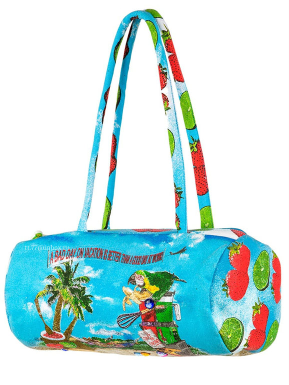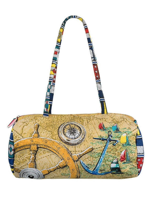 №90041. СУМКА ПЛЯЖНАЯ - 335р. Стильная летняя сумка оригинальной цилиндрической формы. Изделие имеет две ручки кручёного типа и застёжку-молнию, украшенную подвеской-корабликом. Модель дополнена потайным карманом на молнии. размер: 35*17cm Состав: 100% хлопок - верх, рисунок - ПВХ Цвет: принт большое путешествие