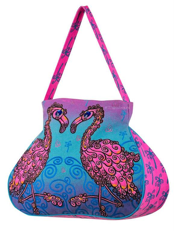№90046. СУМКА ПЛЯЖНАЯ - 445р. Объёмная летняя сумка эксклюзивной формы. Изделие дополнено удобной ручкой и застёжкой-молнией, украшенной подвеской-фламинго. Ещё один плюс модели - практичный потайной карман на молнии. Размер: 48*34*14cm Состав: 100% хлопок - верх, рисунок - ПВХ Цвет: принт фламинго