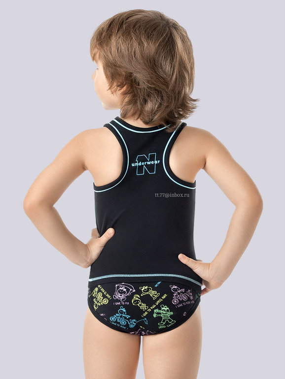 №900104. МАЙКА-БОРЦОВКА ДЛЯ МАЛЬЧИКОВ - 100р. Состав: хлопок 95%, эластан 5% Цвет: чёрный Майка-борцовка для мальчиков младшего и среднего школьного возраста. Модель спортивного кроя, полуприлегающего силуэта, типа «борцовка», отделана контрастными кантами и оригинальным монопринтом в стиле рисунков на асфальте. Высококачественный хлопок с добавлением эластана выгодно улучшает посадку модели на фигуре и снижает риск деформации при стирке. Доступные размеры: 92-98, 128-134
