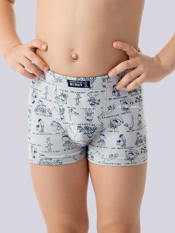 №90099. ТРУСЫ-ШОРТЫ ДЛЯ МАЛЬЧИКОВ - 95р. Состав: хлопок 95%, эластан 5% Цвет: светло-серый Трусы-шорты для мальчиков.Изделие полуприлегающего силуэта, классической посадки выполнены из высококачественного хлопка. Трусы представлены в варианте изделия из однотонного полотна серого цвета с тематическим монопринтом и дополнены отделкой контрастными кантами в рельефных швах по передней детали. Размерный ряд: 80-86, 104-110
