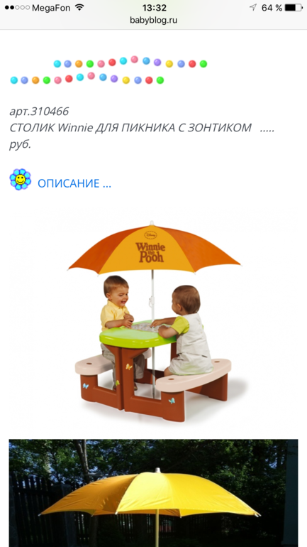 Маслова Екатерина Юрьевна 89267352425 , 89651997745 Роман заказ арт.310466 столик Винни для пикника с зонтом(реально ли его заказать или его нет в наличии? И как долго ждать если что?) если его нет то можно столик Дисней с зонтиком арт.310272 4871 руб., арт.310253 качели croc 3452 руб., арт.310143 песочница 2460 руб., арт.310231 спортивно-игровой комплекс приключения 16826 руб., качели металлические 2в1 арт.310191 6345 руб, ждём подтверждения заказа и уточнение всего по наличию, Доставка желательно в калужскую область , но можем рассмотреть и другой вариант с Москвой, когда возможно получить. Заказ? Почта agapova.ekaterin@mail.ru
