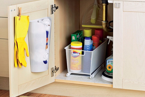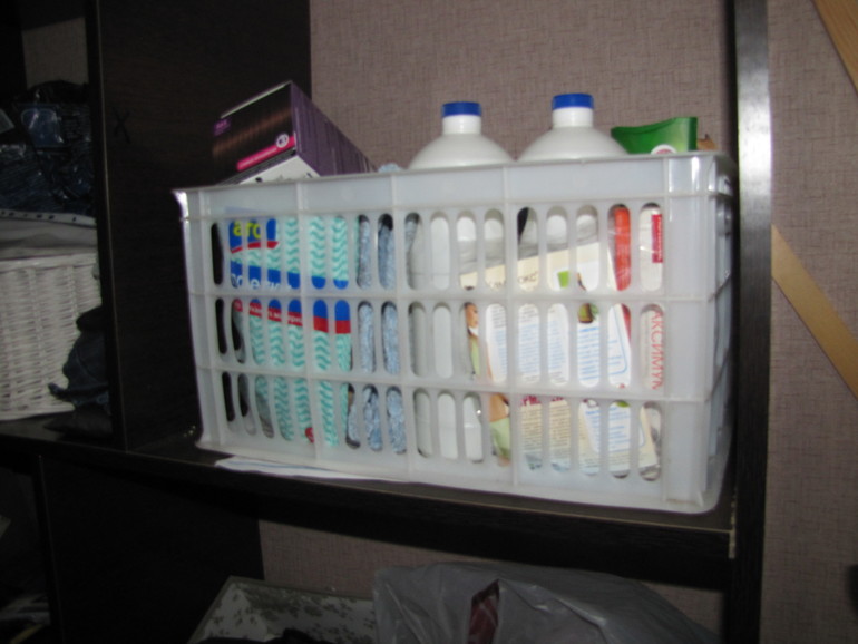 А я еще в икее я купила выкатную корзину пластмассовую. Очень удобно и нет необходимости нырять в глубь шкафа за нужным средством. Такую корзину можно разместить где угодно! Она универсальная!!!