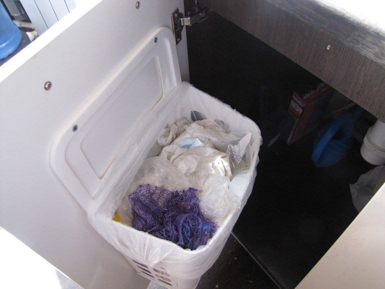 Теперь про мусорное ведро. Вам удобно его использовать? Я нашла прекрасный вариант на дверцу (экономит место под раковиной!):
