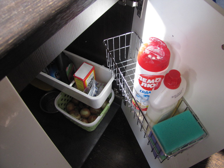 Я под раковиной храню кошачий корм и удобрения для цветов. Тут у меня все в порядке.