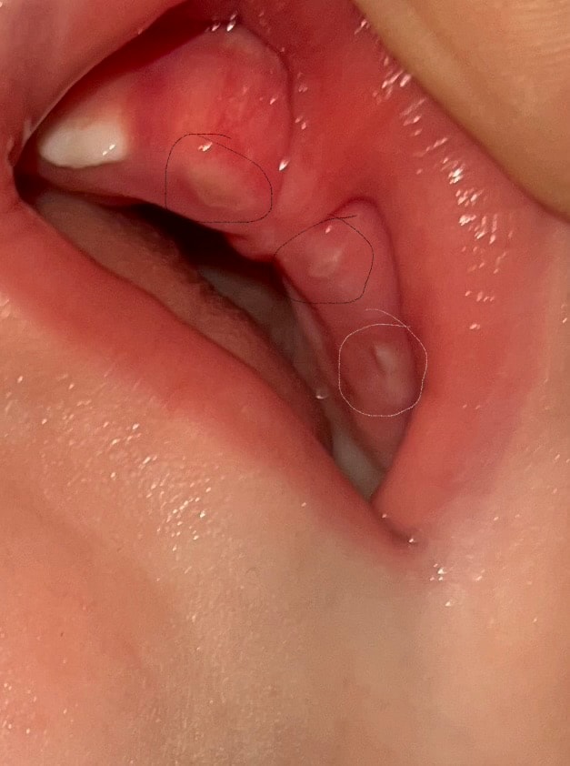 Здравствуйте, подскажите это все 3 зуба лезут? Самый последний правый по-любому зуб, там уже торчит, а вот это два меня смущают, как-то странно выглядит..
