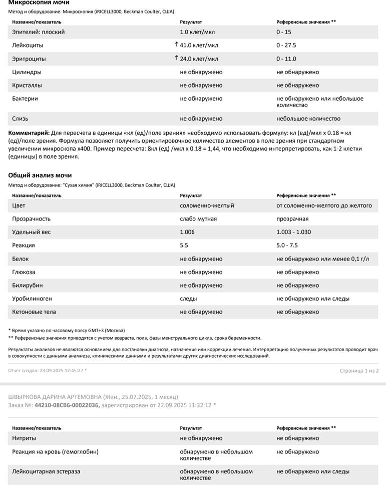 Девочки, посмотрите, что такое? Ребенок активен, температуры вроде нет, когда писает не плачет, просто замирает и хмурится. А анализ вот такой(( может я ей натерла ватным диском там? Я периодически аккуратно там промываю, ведь там белые выделения скапливаются.