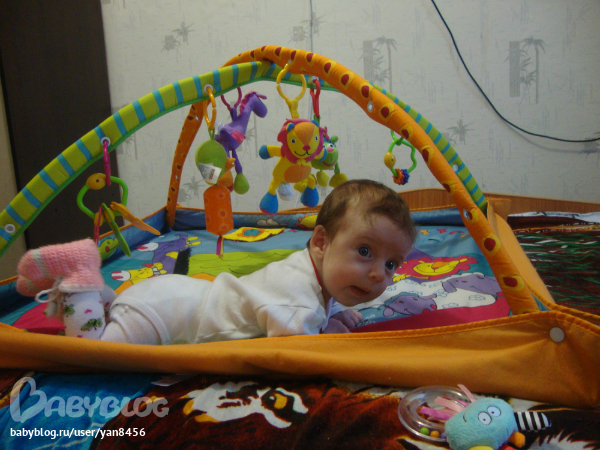 Посещение врачаСходили вчера.Теперь наш рост 62см и вес 4753.Опять мало.Как надоели они со своим "мало".Я обманула педиаттра,что пробовала докармливать,но Каролина истерит и выплевывает смесь.На что мне дали банку другой смеси на пробу,"может ей эта понравится...".И еще сказали,что если и эту смесь не захочет,то докармливать гречневой безмолочной кашей.Господи,да зачем мне это?Деть у меня не голодный,кушает по требованию,молока много.Поставили нам 2 прививки,перенесли их хорошо.Сразу же зашли к неврологу,всё хорошо.Спросила она у нас про вес,я сказала что мало набираем,она спросила :"Может есть в кого?".Конечно есть,у нас папа высокий и худой.И невролог сказала,что если мы только на ГВ,то значит всё нормально,т.к. отклонений и жалоб никаких нет,развивается хорошо.Вот так.Лучше б нам это педиатр сказала=)Докармливать я так и не буду=)Теперь пойдем через месяц.Вот такие мы сейчас:
