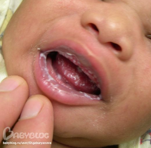 покажите педиатру-если это молочница-ее лечить лучше...у моей вот только прошла-и никакого налета от молока нет на языке