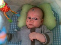 И вот, через 20 дней, когда мы уже и думать забыли про эту ветрянку, у нас появились первые пятна. Два дня всё было мило: несколько болячек, хорошее самочувствие.