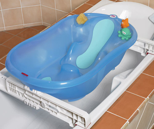 Мы с рождения купались в анатомической ванночке, это такая, где горка встроена, вот такая