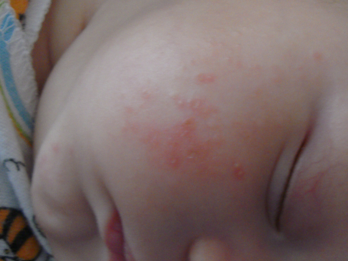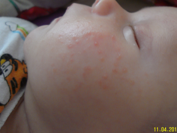 У нас тоже есть прыщички, уже немного, они то есть, то затухают и опять неного повляются, я сейчас мажу кремом Гистан, мне кажется помогает, их почти нет.