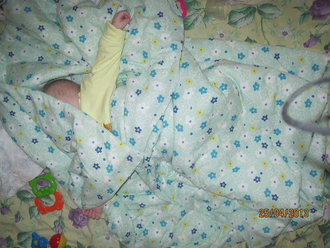 у меня девочка)) вертится, но почему-то одеяло на личике и в ручках если потеребить, то уснет обязательно. Просто расстилаю одеяло, кладу ребенка посередине и края сверху на нее заворчачиваю.. сама развернется)))