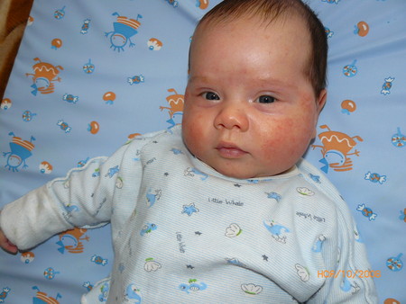 Кроме щечек, есть небольшие пятна на ножках рядом с коленками (шелушатся, белого цвета) и стала шелушиться кожа на голове около лба. Врач сказал что все это от дерматита.