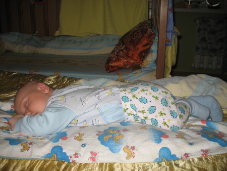 С недавних пор начала переворачивать на животик (до этого протестовал), так он заснул как сурок на целых 2 часа! Головку пока недолго держит, но может через упор на подбородок сменить бочок, хотя предпочитает лежать на левой щечке. Часто проверяем, как он там дышит. Теперь днем только так и спим, ночью - бОльшую часть тоже. На спине или бочку долго не протягивает, просыпается и капризничает, в основном из-за пуков. А при сне на животе они сами выходят, когда переворачиваю для кормления. И вот меня мучают сомнения: надо ли пытаться приучить ко сну на спине и если да, так как добиться продолжительного отдыха без пеленания, от которого недавно отказались? Да и не скажу, что пеленание себя оправдывало и на спине он себя ручками будит, просто не спится почему-то ему так...