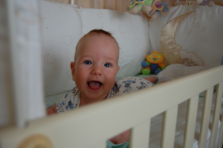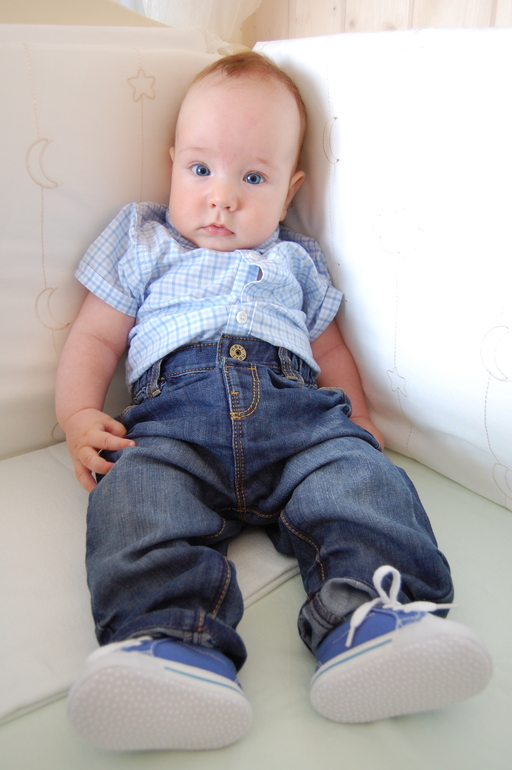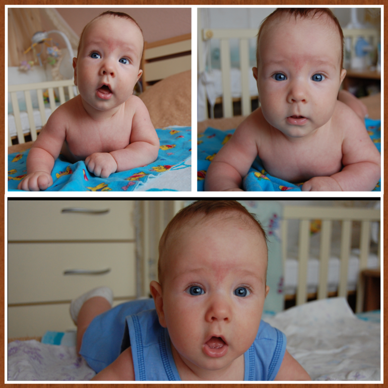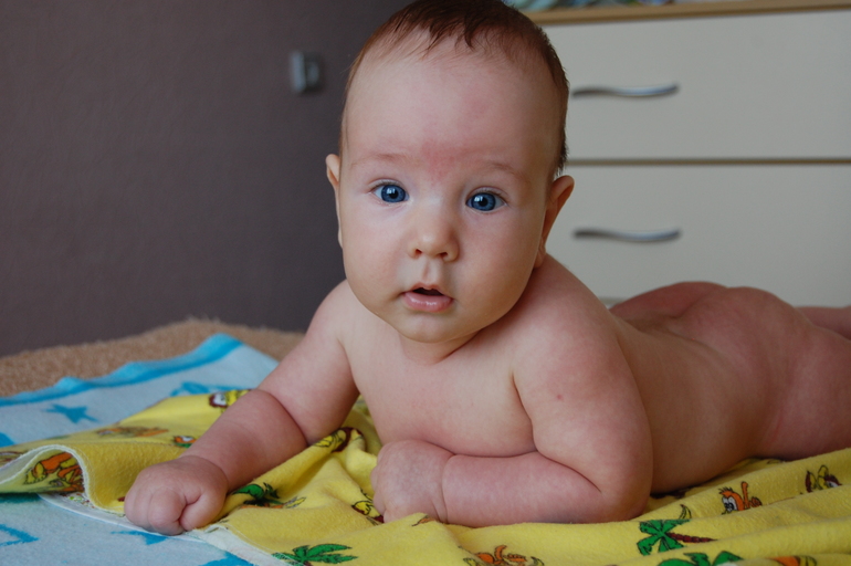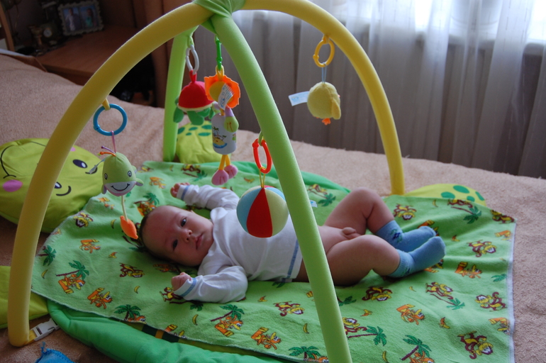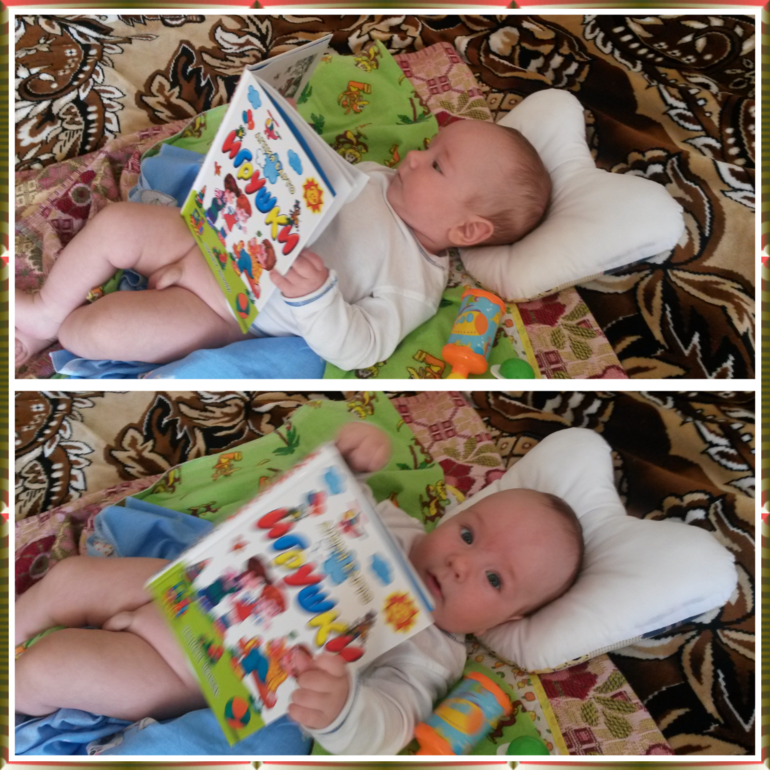 Сын растет не по дням,а по часам.Заметно вытянулся (люлька нам впритык),ну и щечки мы наели тоже))Однако с 3 до 4 мес.вцелом трудное время было для меня и моих родных,т.к. Илья ну очень много капризничал и его поведение порой выходило из ряда вон.Я сама много нервничала,плакала,т.к.не могла справится с истериками сына,а рядом у меня в помощниках никого нет.У меня одно время даже страх был перед плачем сына,т.к.я не могла его успокоить никак и мне было реально страшно!Сначала я думала,что это зубы,т.к.слюней у нас моря и океаны,кулак вечно во рту,ну и уши потом уже чесать начал.Я несколько дней подряд проверяла пальцем,но ничего не обнаруживала.Потом поведение Ильи я объяснила его психозами по поводу того,что он никак не может научиться переворачиваться на животик.Он ногу закидывает,всем телом группируется,а вот голову оторвать не может.Я помогала ему,т.к.эти его кряхтения первоначальные потом перерастали в дикий ор.В 3 мес и 27 дней Илюша сам перевернулся 2 раза,вроде обрадовался,подуспокоился день,но не тут-то было!Теперь у нас мания величия везде и всюду делать перевороты!Ну абсолютно на спине не лежит!Особенно меня расстраивает то,что после еды он обязательно перевернется и начинаются срыгивания!!За день у меня скапливается гора пеленок,т.к.все их он в кучу собирет,обслюнявит,срыгнет на все и т.д.Утром только глаза откроет,сразу на живот и так весь день.НО!Обратно с живота на спину сам не переворачивается (ну было пару раз,но до закономерности далеко еще) и вот тут опять ор стоит!!!Прям крик,что он устал!Переворачиваю на спину,тут же обратно на живот и так по кругу.Поэтому с живота беру на руки,он хоть отвлекается немного,забывается,потом опять на спину и так он хоть неск.минуточек полежать может.Вообщем покой нам только снится!