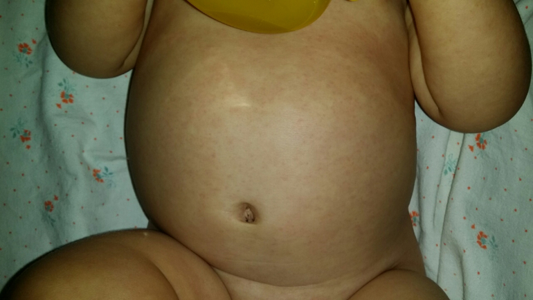 такой никогда((максимум на шее чуток,а тут и ручки и за ушками.Короче, наши мысли о розеоле оказались верными!