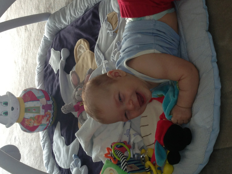 Из негативного: Мы совершили первый полет с нашей кровати. Как я испугалась и рыдала это не передать словами, корила себя, но после разговоров с подругами поняла, что летали многие и самое главное, что все обошлось. Наблюдаем сейчас за ним, но пока ничего подозрительного. Перелез мой заяц через все мои ограждения( подушками закладывала!) все, теперь переехал мой окончательно в свою кроватку. Мне так спокойнее. Он передвигается у нас по полу как тюлень, опираясь на руки. Вертится вокруг своей оси. Так интересно за ним наблюдать. Берет в руки игрушки, тянет их в рот. Растет мой сыночек. Ну и несколько фоток моего солнышка.