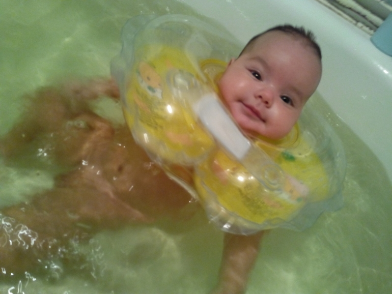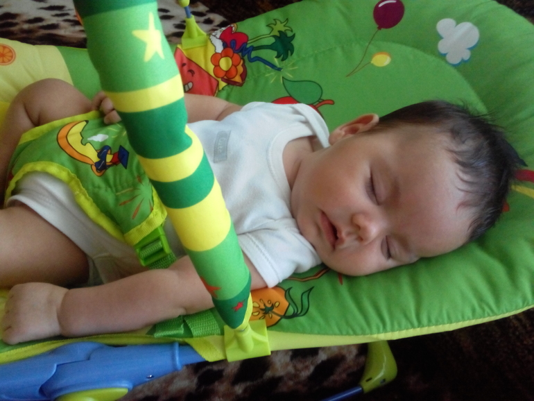 Еще сынульке очень нравится купаться в ванне с кругом,разглядывает все вокруг,переворачивается со спинки на животик в воде,плавает туда сюда..У нас по прежнему соблюдается режим.Теперь днем мы уже спим в шезлонге,а не на ручках у мамы, а ночью по-прежнему в кроватке.А всего и не вспомню,чтобы написать..)