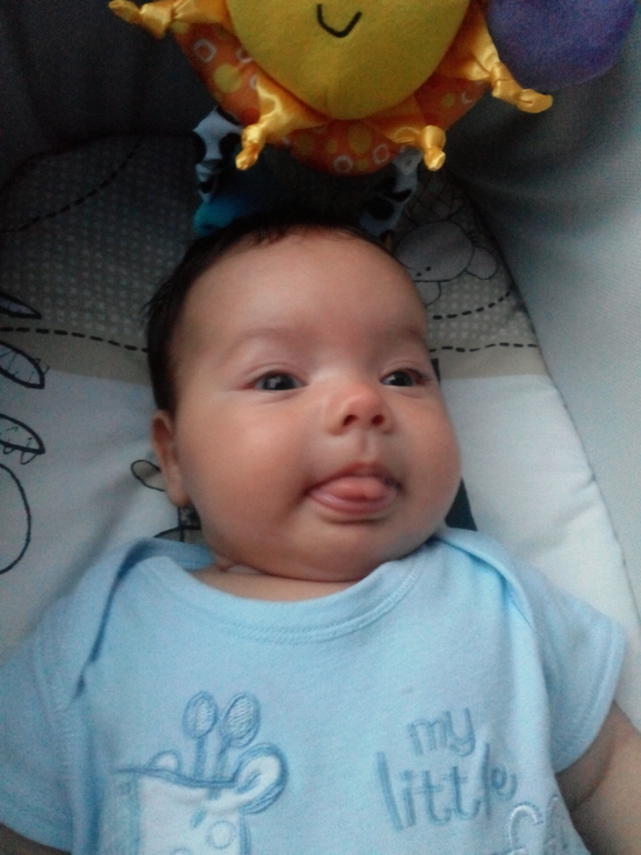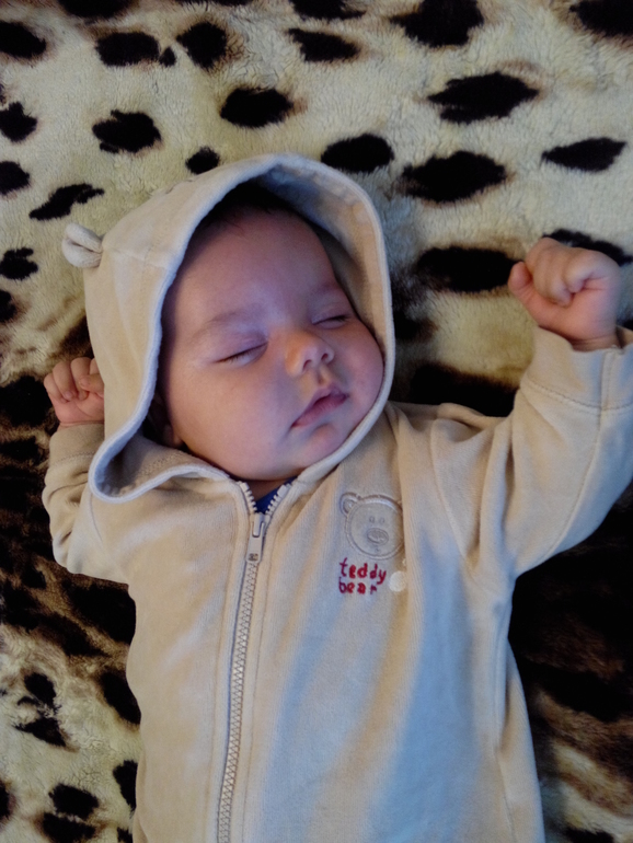 Умелки : Мы уже тянемся ручками к игрушкам. Когда лежит ,выставляет ручку(как супермен))с кулачком и потом по чуть-чуть разгибает пальчики,пытаясь дотронуться к игрушке. На животе мы все так же не любим лежать,и сердимся,если это длится больше 5 мин. Зато мы уже поворачиваемся сами на бочок,когда ему захочется. Нравится так даже спать ему.Еще последнее время прикрывает ручкой носик,и пол лица,когда кушает и засыпает. Он и на узи последнем так лежал,спал.)Я так хотела посмотреть на носик его,а он спрятал его под рукой..Вот и осталась у него эта привычка. Когда лежит сам, и я отхожу,проводит меня взглядом, а потом ищет. Уже целенаправленно тащит в рот кулачок,бывает так вкусно ест его,аж чмокает! Много разных,новых звуков начал издавать..например я ему говорю "агу", а он мне в ответ " аку,аху"и "ауууу" получается у него..А остальные даже и не знаю как написать!!)Бывает повторяет,когда язык ему показываешь,а он мне в ответ.Очень любит мобиль с рыбками свой ,30-40 мин может лежать смотреть на него,разговаривает с ним и интенсивно так дрыгает ногами).