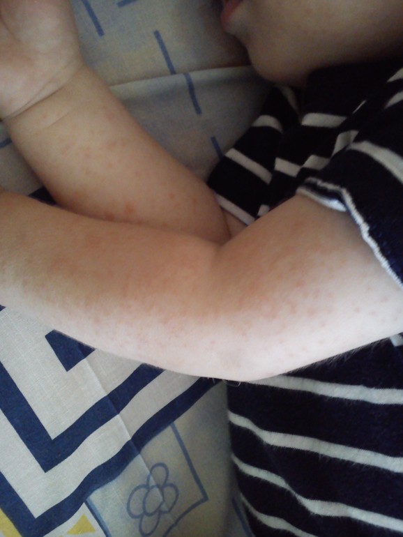 P.S.ножки без сыпи, на плечиках было и прошло, немного точек на животике есть и несколько на лице. Но очень-очень много на ручках, прям местечка нет чистого