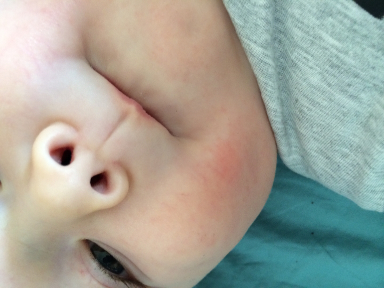 Не может быть раздражение от слюней и ткани. У меня когда деть мокрой шечкой лежит, тоже такое бывает. Или аллергия на что то.