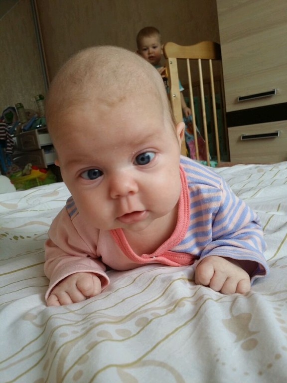Болезни глазМоей крошке 4 месяца будет, и она косит на оба глаза! Со старшеньким такого не было! Делаю с ней зарядку-она артачится , вертится, капризничает!