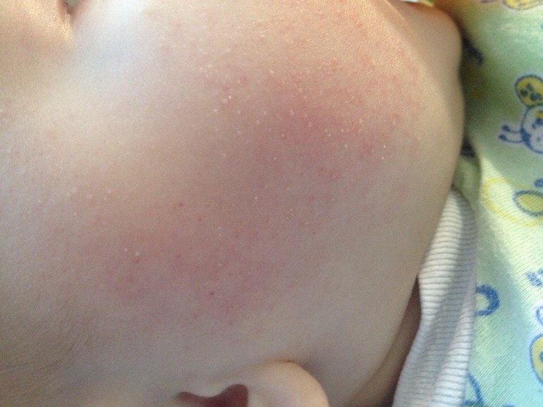 АллергияЕсть ребенок, почти 8 месяцев. С рождения на ГВ, прибавки всегда хорошие. С рождения жидий стул. Сейчас 1-2 раза в день жидкий, желтый. На лице с 4х месяцев белые высыпания - сейчас усилились. Мама месяц соблюдала строгую диету - все без изменения (диета была очень строгая). Недавно дерматолог сказала что это атопический дерматит, прописала крем Момат (гормональный). На фото эффект после 3х дней (появились как будто головки). Ребенок спокойный, ничего особо так не беспокоит.Мамочки, у кого было такое, похоже на дерматит? И как быстро помогают гормональные мази?