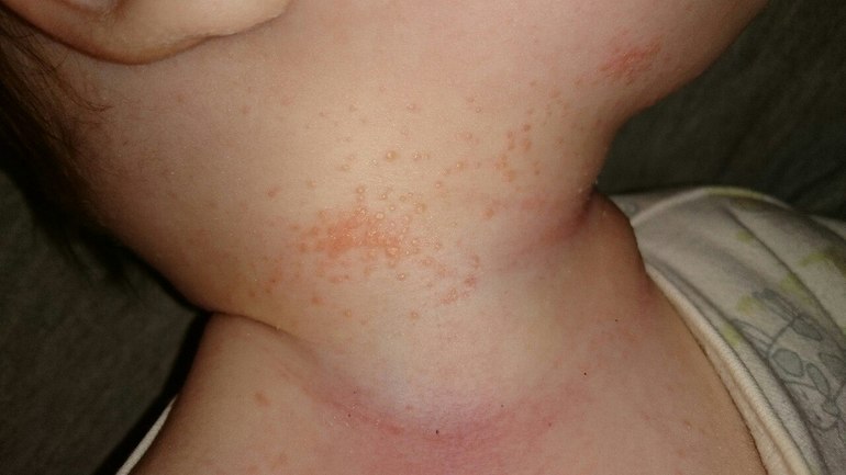 Вот тоже может быть. Вспомнила что когда дочка поменьше была тоже потела и примерно так было и на шее и на затылке. А так конечно лучше врачу показать. Выздоравливайте скорее!!!!