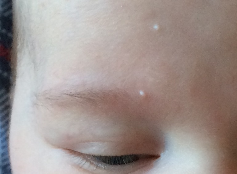 Как их-милии, что-ли... у нас под глазом и на щечке были. Это из-за того, что первородная смазка закупоривает поры, норма. У нас в 4 месяца еще точно были. Но в 6-уже нет