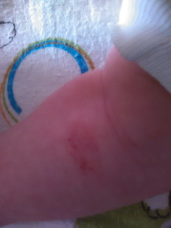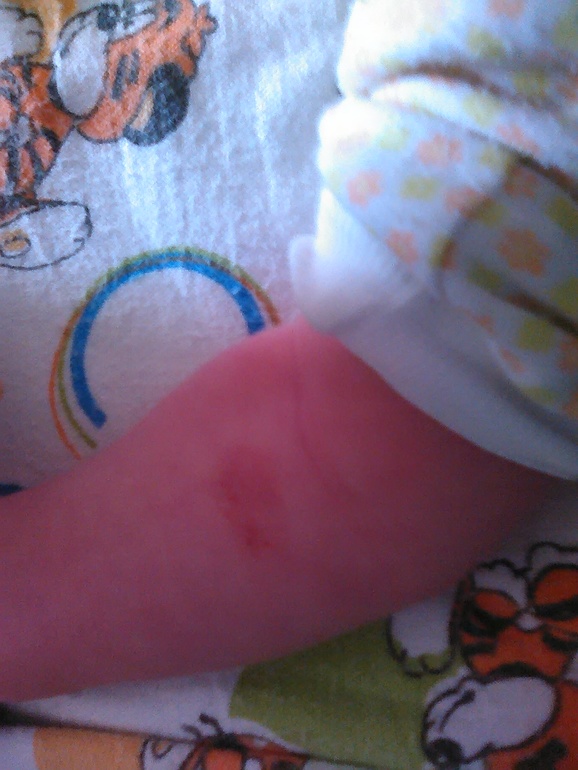 У меня у ребенка такое...вторую неделю. не могла понять что это. оказалось что он сосет ручку)))) хотя у вас в не очень удобном месте.