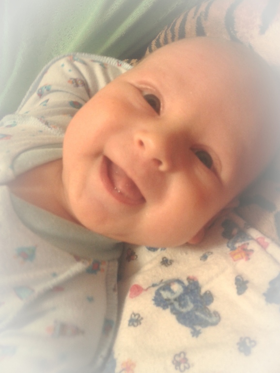 Сынулька улыбается и гулит., когда с ним рвзговариваешь... Радость моя!!!