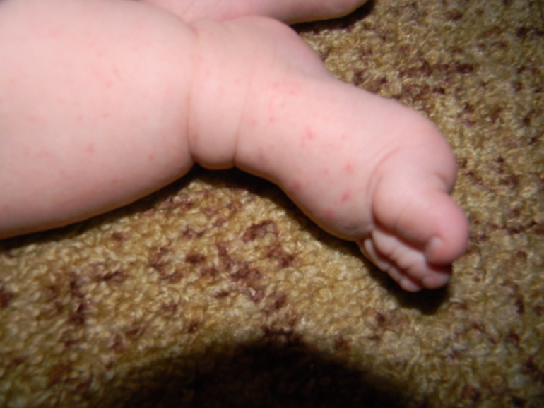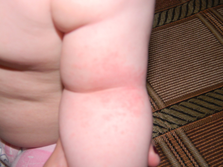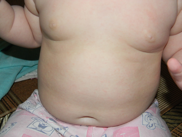 Высыпания на кожеНадеюсь она! Началось все 12 мая, когда у Ксюши на локтевых сгибах появилась красная сыпь. Я начала давать фенистил и отменила все оранжевое и агушу с добавками, а сыпь не проходила. К вечеру 22 мая начала подниматься температура , потекли сопли, к утру уже была 39.5 и появились еще красные точки. Я скорее вызвала врача, а она сказала, что это аллергия и садиковый вирус (Катя принесла сопли из садика). Температура сбивалась часов на 6 и я опять давала жаропонижающее. В понедельник, 25 мая, на 4й день температура поднялась до 40,1 ! Я вставила свечку и вызвала врача. Она назначила анализы крови, мочи и назначила, конечно же, антибиотик. Мой план был такой: антибиотик не давать, ждать анализа крови, а если темп будет опять повышаться, то скорую и в инфекционку. Ксюше в инфекционку не захотелось, поэтому температура больше не поднялась) А сегодня сдали кровь , позвонила врачу за результатом : лейкоцитов 18, и повыш СОЭ (не сказала сколько) остальное все нормально. Поругалась с ней по поводу назначения антибиотиков, та сказала, что давайте анибиотик и вставляйте виферон (авось что-нибудь поможет) , я сказала, что не собираюсь, тк анализ крови нормальный, в общем каждый остался при своем мнении. А к вечеру Ксюшку еще обсыпало на животике , предплечьях, шее...в общем везде. Ну и остается вопрос, розеола ли это? Если она, почему сыпь появилась до температуты? Или не все болеют по учебнику? Или та сыпь к розеоле не имеет отношения?